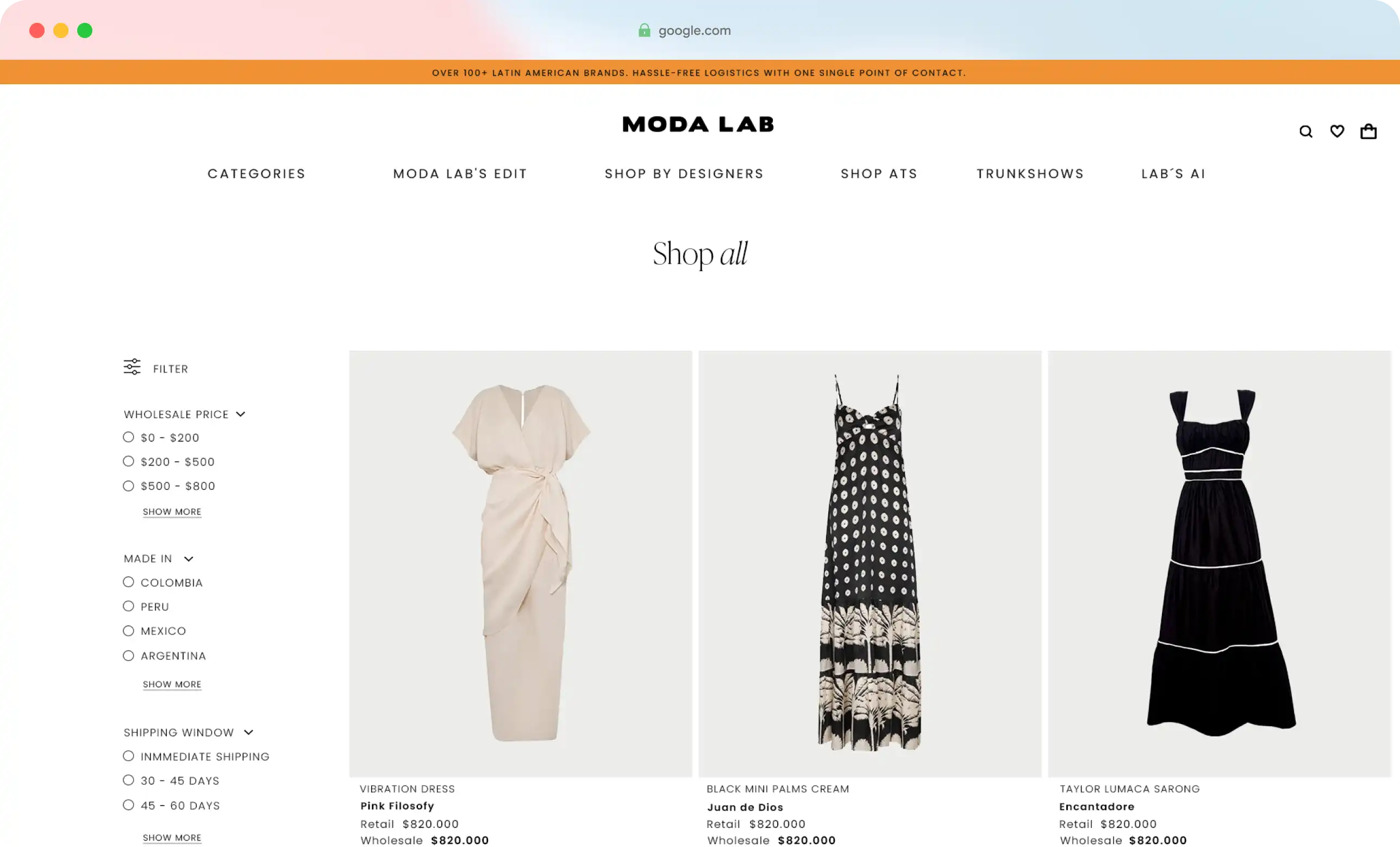 Less admin, more sales. Moda Lab frees brands from the manual grind so they can scale globally, connect with the right buyers, and focus on creativity.